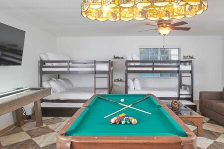 2. Game Room w/ 2 full over full bunk beds both accompanied by two twin trundle beds & a 55″ 4k Roku-enabled TV