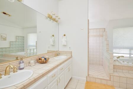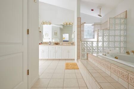 – Walk-in Shower w/ a handheld & rainfall showerhead