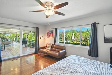Guests have full access to the home and property, including ample parking along the long driveway. The new EV charger is available for your convenience. Just minutes away, you’ll find grocery stores, local dining, and delivery options including DoorDash and Instacart.