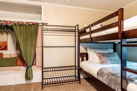 BR3: 3 full/full bunk beds, a cozy nook, and a 40″ TV.