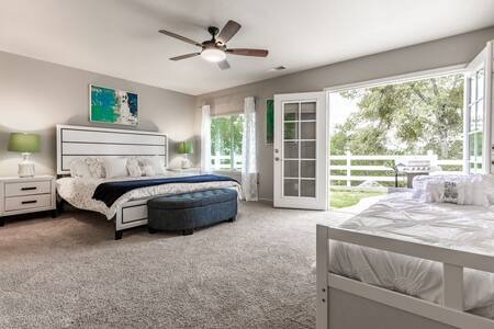 This home comfortably accommodates groups and families. Each bedroom is thoughtfully designed for rest and relaxation. The living areas can also be used as additional flexible sleeping space if needed.